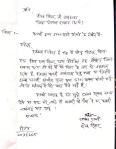 बात यहीं खत्म नहीं होती — सोनू सिदार ने जिला पंचायत उपाध्यक्ष दीपक सिदार को भी इसकी जानकारी देते हुए पत्र लिखा था, परंतु अब तक कोई ठोस कार्यवाही नहीं हुई। इस पूरे मामले ने राजस्व विभाग में फैले भ्रष्टाचार और लापरवाही की पोल खोलकर रख दी है।